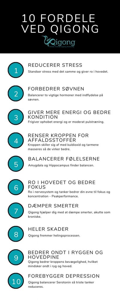 Du kan desuden læse om de 10 fordele ved at gøre Qigong.