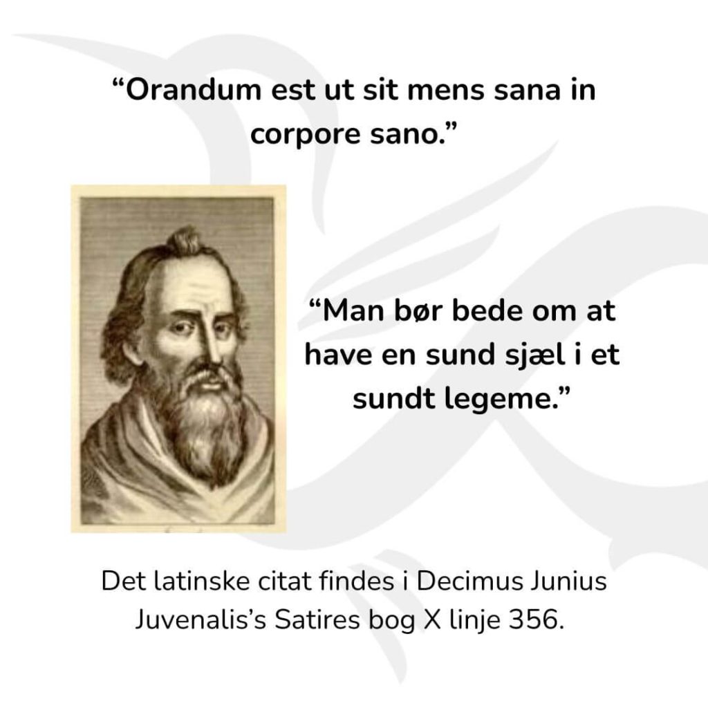 Juvenal var en romersk Satiriker ca. 55 – ca. 135 efter KF. Han bruger denne linje som en del af en kritik af menneskers ønske om materiel status, berømmelse eller skønhed – han mener, at hvis man skal bede til guderne, så bør man bede om det, der virkelig gavner: en sund sjæl i et sundt legeme.
